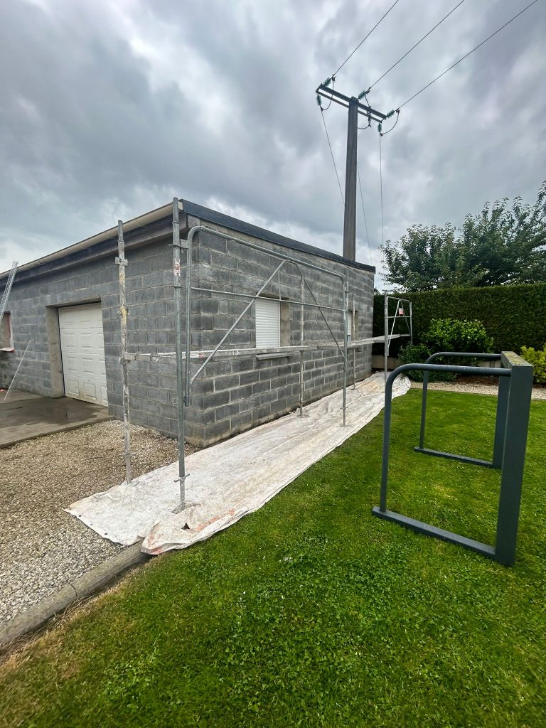 Tout d’abord, une première couche est appliquée afin de permettre à l’enduit d’accrocher correctement, on l’appelle le gobetis. Ensuite, un sous enduit est posé.